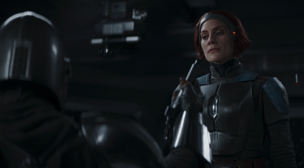 Mando and Bo Katan: When Mando comes into contact with actual Mandalorians in Chapter 11: The Heiress and they take their helmets off, he tries to invoke the same creed…and gets shut down. Bo Katan recognizes Mando’s conviction with being a “Child of the Watch.” It is not clear if this is Death Watch (of which Bo Katan was a member) and they evolved to be more extreme than their Clone Wars form or if it is another group. This encounter hits Mando differently and, in a beautiful shot, he watches Bo and her team jet from a ship they’ve destroyed. It is in this scene that, for the first time in the series, Mando truly seems alone. It is in this episode that his perspective starts to shift on what it means to be Mandalorian and our hero is presented with an alternate view of his truth.