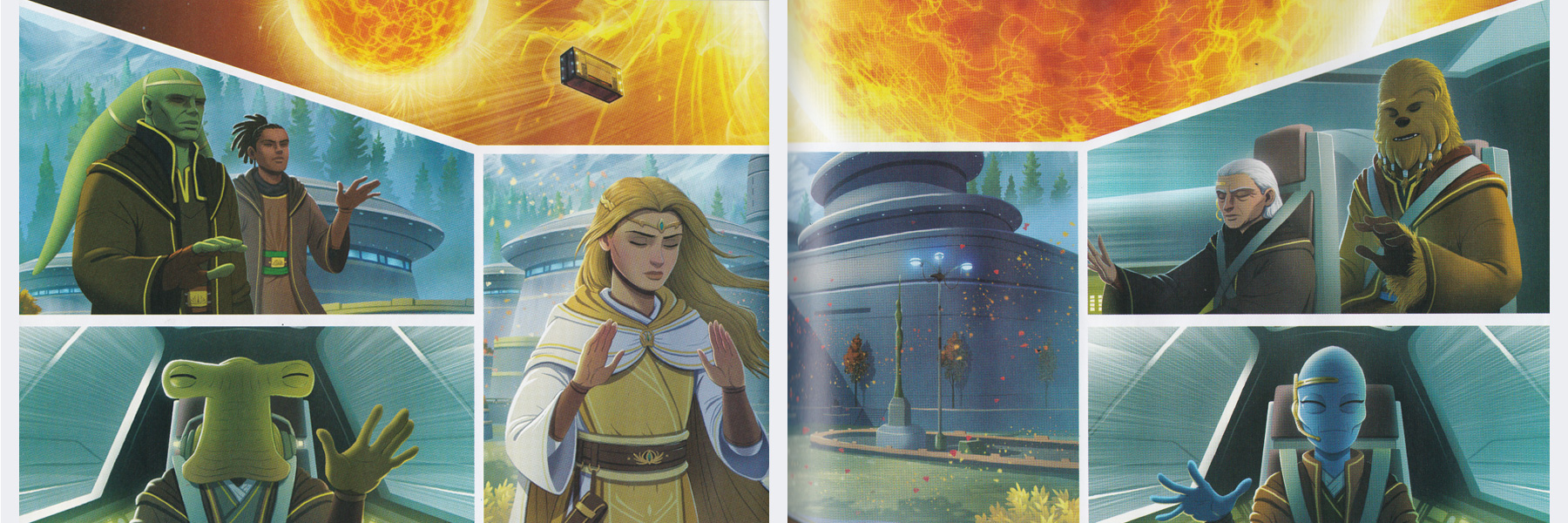This story takes place during the third part of Light of the Jedi after the battle with the Nihil since Sskeer is already missing his arm and is clearly not handling his encounter and the loss of Master Jora Malli well. Avar Kriss, on Starlight Beacon awaiting the Jedi arrivals for the opening ceremony, notices Sskeer has closed himself off through the force. The issue ends on a positive note for Keeve, but on an ominous note for her Master.