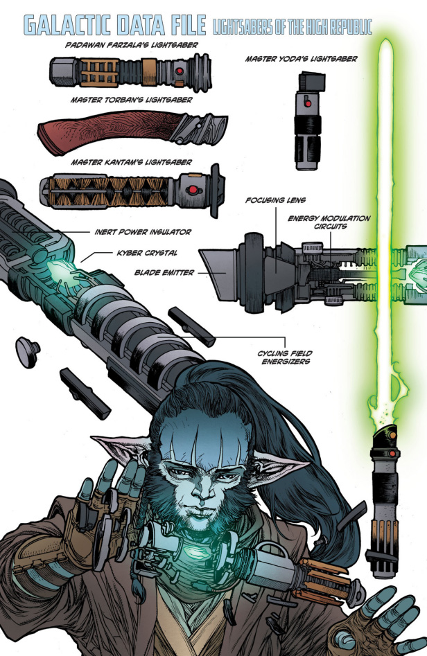 This is an issue where I remind myself that this comic series is geared more towards younger Star Wars fans and that the next issue will have more focus on Marchion Ro. I really enjoyed the first issue but, if it wasn’t for Marchion Ro and the plot to find an artifact that could prove significant to the overall High Republic story, I might not continue. On the positive, I am enjoying these galactic data file inserts and this month is all about the lightsabers, highlighting Farzala’s weapon. I do like what little we have had of the Zygerrian Padawan and hope he gets more to do.