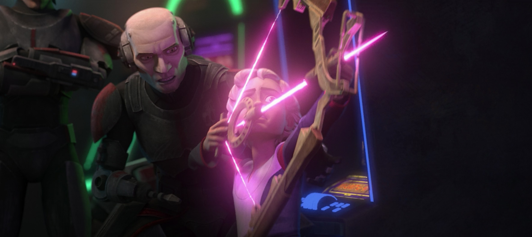We are still on Ord Mantell when episode six begins and the guys, and two regulars of Cid’s bar, are watching Echo train Omega to use her newly acquired Zygerrian crossbow. Then they get briefed by Cid on a new mission and the episode never looks back. “Decommissioned” flew by and was probably the most action-packed episode this season. Plus, Rafa and Trace Martez return with a mission of their own. Let’s get right to it:
