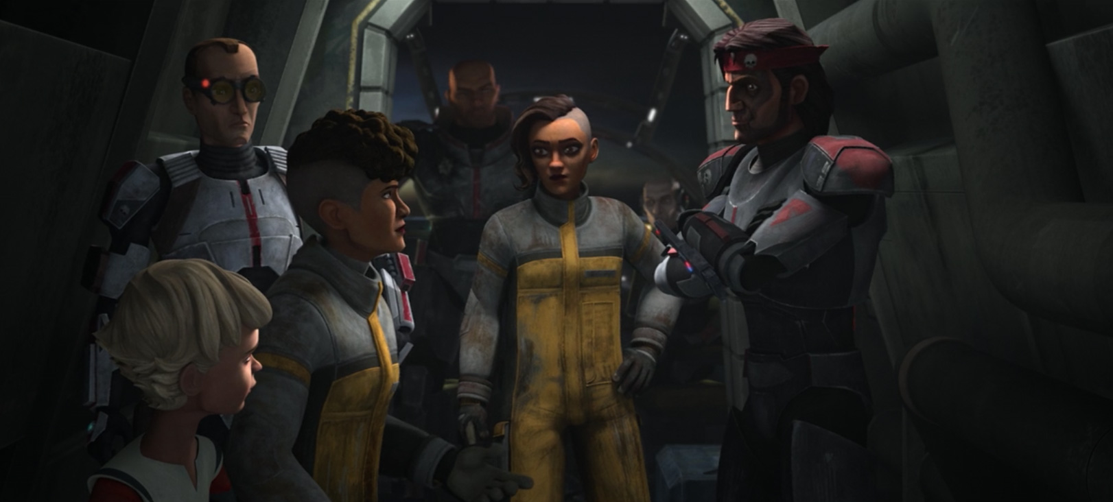Complete side note but early in the episode before Cid briefs the team she asks if any of them know what a tactical droid is, waits a minute, then starts answering but in those few seconds Tech looks like a schoolboy with his hand raised, waiting to be picked and excitedly starts talking over Cid to answer the question. It is a subtle, funny moment and The Bad Batch has had several of these blink-and-you-miss-it bits so just giving some love to the writers and directors (specifically Amanda Rose Muñoz for this episode’s script). Pure Star Wars humor.