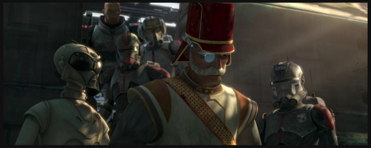 I don’t understand how Dejarick works. At least I don’t understand why we always see the last moves of the game, and the winning player always seems to have more moves than the loser. But Omega understands how it all works which is all that matters. Dejarick is usually onscreen as downtime for characters, but here it is used for story progression. Omega turns out to be a strategic genius and, after rescuing herself from Cad Bane, she uses her skills to pay off the Bad Batch’s debt to Cid. The group returns with the Senator to see a crowd gathered around the Dejarik table and Omega beating her final opponent. She’s made enough money to pay off their debt, and she never even had to leave Ord Mantell.