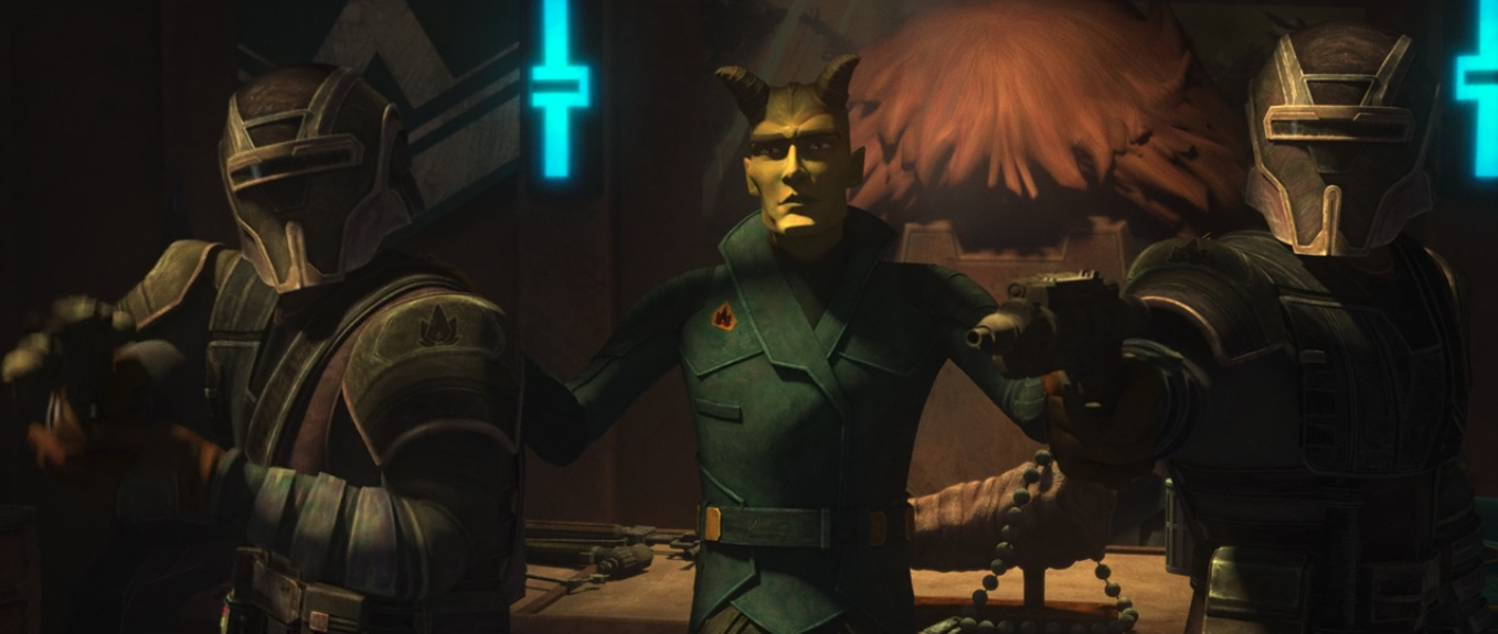 Time has passed between “Rescue on Ryloth” and this episode as the Bad Batch returns from another mission for Cid. They do not know that they are officially targets of Crosshair, but they do know that a bounty hunter is after them, so the decision to stay on Ord Mantell is curious. Things change when they return and find Cid’s Parlor filled with soldiers and her office occupied by Roland Durand, a strangely handsome Devaronian. Omega wants to help Cid, but Cid is waiting for them in their ship with the “I kept your secret” card to play, threatening the team into helping her get her business back. The plan involves stealing some spice that Roland has acquired for the Pykes. Things fall apart, leaving Cid and the Bad Batch forced to retrieve the spice from an infested underground cave.