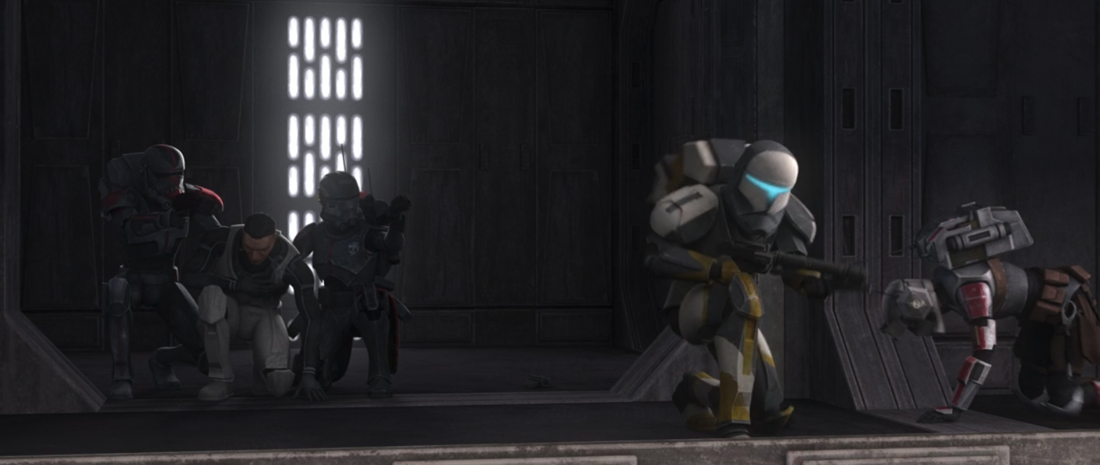 Plus (spoiler alert), Gregor is not a significant character in either The Clone Wars or Rebels, so having the team spend time breaking him out to explain how he ends up with Rex in Rebels is a waste of perfectly good prison break. You know what would be a great prison break? If Hunter felt compelled to go back to Ryloth and free Howzer and his men, then he was captured. The stakes were already established, Howzer is a favorite of people who are already watching The Bad Batch, but might not have watched The Clone Wars or Rebels. And it would not be a shoehorned attempt at adding a minor character to the mix. At best, Gregor serves as an exposition tool to explain Project War-Mantle to the team. And Dee Bradley Baker does a great job portraying Gregor’s beginning stages of kookiness that is evident as an older clone in Rebels. Other than that, this is one waste of an appearance.