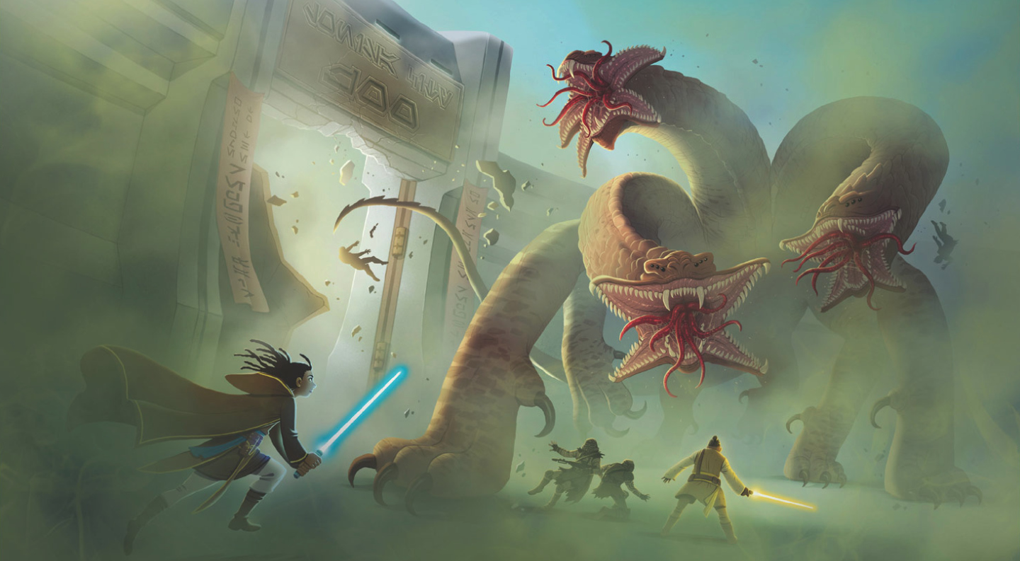 Some of the dialogue in Race to Crashpoint Tower feels junior, even for a middle-grade novel. And there are colloquialisms similar to Rian Johnson’s telephone jokes from The Last Jedi that feel out of place in Star Wars. Zeen saying “…I roll with Lula and her crew” took me out of the story for a minute. This might not be all on Older, but the dialogue of the Drengir seemed extra silly.