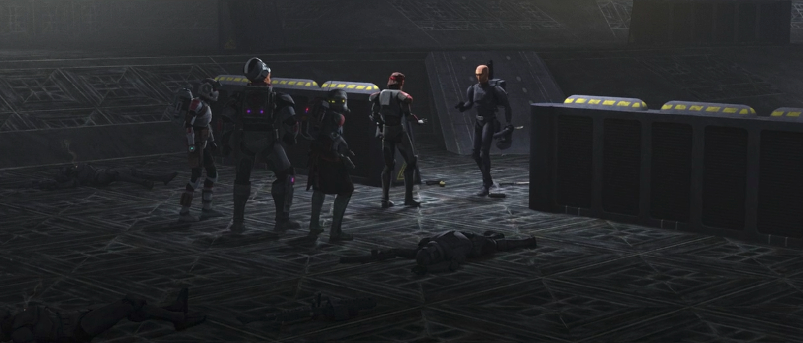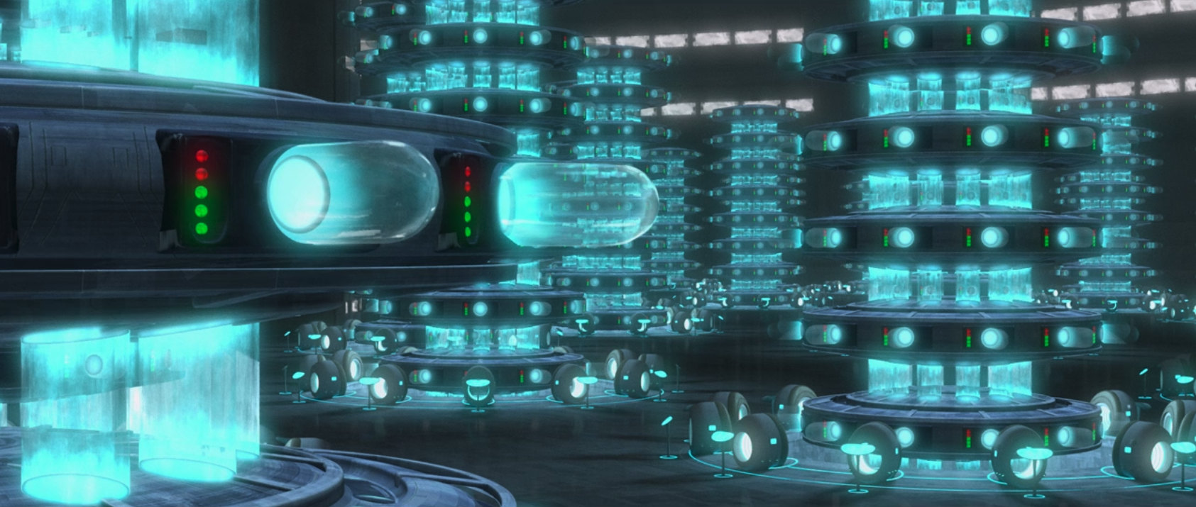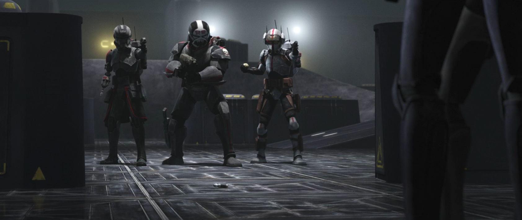 Kamino is a major location in the Star Wars animation-verse, and the training room where the final showdown takes place has played significantly into character growth for clones like the Domino Squad. The shots of the empty hallways, cafeteria, and the lab while the team is fleeing the facility are haunting.