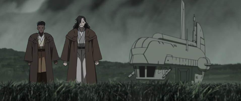 The whole idea of a twist is also rare in Star Wars. The modern Star Wars (and non-Star Wars) community has not yet collectively experience such a twist. That is special. And the hints to the mystery are all there: the opening exposition mentioning the Sith’s plans to thwart the Jedi, Ethan (who was light side) being the only Jedi who ignited the lightsaber at first, and the questions from the “Jedi” to the droid, who is the Margrave in disguise. All the credit to Production I.G. for planting the seeds for the payoff in a 24-minute short.