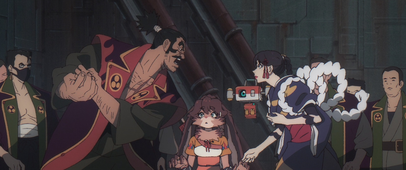 I was so taken aback by the opening sequence of a 3D Star Destroyer coming out of hyperspace that I lost focus for the first minute of “Lop and Ochō.” Star Destroyers entering the frame via hyperspace is classic Star Wars imagery. And Imperial prejudice towards non-human species is a common occurrence. Lop’s species are enslaved (though in English dub the word “laborer” is used). The Empire has been a part of other stories in Star Wars Visions but mostly relegated to the background. Here it is front and center and throughout the story as an impending force of doom for the family. We also get an Imperial officer, though his look is more anime than Star Wars.