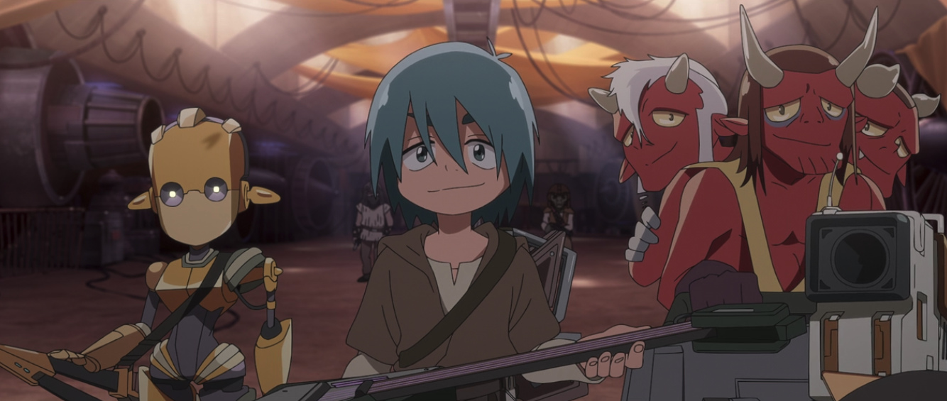 “Tatooine Rhapsody” is a rescue mission set against the backdrop of a musical set. Jay and his bandmates save their friend without ever having to ignite a lightsaber. Jay even repurposes the lightsaber as a microphone for Star Waver’s set. Star Wars Visions has been heavy on the lightsabers, which is fair as they are a key part of what makes Star Wars, Star Wars. But it is not the end-all, be-all.