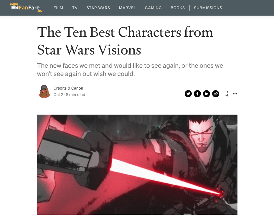 Star Wars Visions is out and has been seen by Star Wars fans (and anime fans) worldwide. The episodes, ranging from 14 -23 minutes only had a limited window to tell a story with compelling characters. Some succeeded more than others (you can read thoughts on the episodes here), but certain characters definitely made an impression. Here are the top ten that stood out…