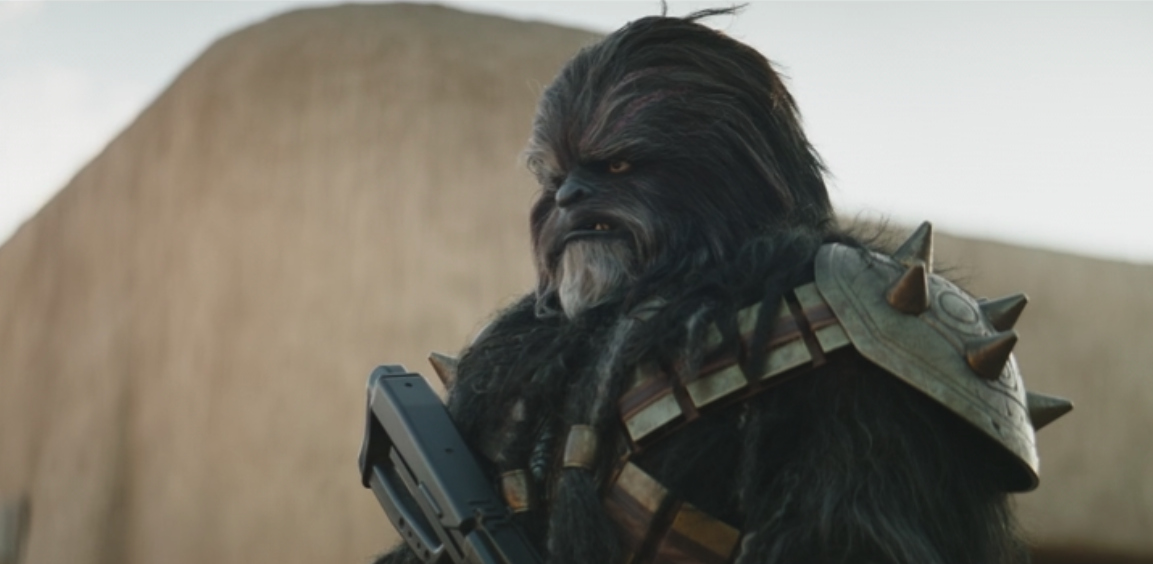 But as cool as it was to see Jabba’s cousins, it feels like the true reason they were in this episode was to introduce Black Krrsantan/BK/Santy into live-action. Santy does not do much in his first scene except look the most intimidating out of every potential foe in the series thus far. But he did not need to do anything, just be there. He is a seed planted for a future return, probably on this show but likely on others as well. Black Krrsantan is the first major character from the comics introduced into live-action and originated in Darth Vader #1 (2015). The comic series is between A New Hope and The Empire Strikes Back as Darth Vader finds out that Luke is his son. He regularly worked with Jabba the Hutt, so it makes sense that he would be working with Jabba’s cousins, who might be the main antagonists for this series. He also has a history with Boba Fett and with Obi-Wan Kenobi, so an appearance in the Kenobi series is on the table. Having his past bounty hunter life collide with his new life is also another element that I wanted to see in this series, and it is great to see more bounty hunters not associated with the Original Trilogy.