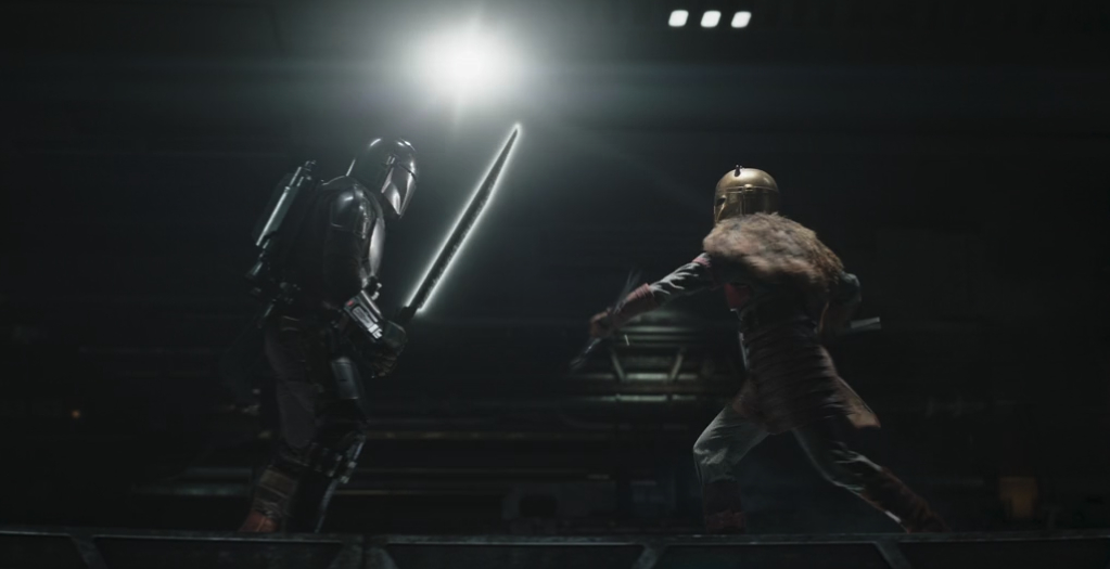Most of this information is not new to canon junkies or people who have watched The Clone Wars and Rebels, but it will be new for fans who might only watch this episode. And this confirms that Bo Katan will be a big part of season three of The Mandalorian. And now, possibly Clan Vizsla as Paz Vizsla challenges Mando for the Darksaber. He has a better case for ownership than Bo Katan as his ancestor made the thing, but he is defeated by Mando. Neither of them can wield the sword effectively (it took Sabine Wren training with Jedi Kanan Jarrus to manage), but The Armorer does her best to establish the basics.