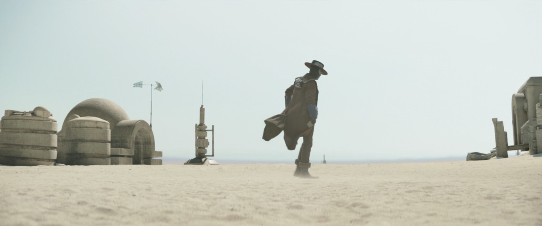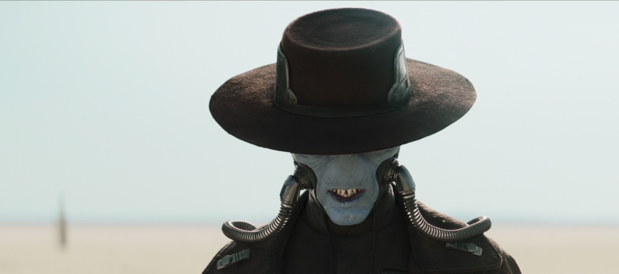 Here, that problem is the Pykes and now Cad Bane. His appearance is not a surprise as we have seen Cad Bane return in The Bad Batch, where he had a direct confrontation with Fennec Shand. I mentioned in my post, Whatever Happened to…Cad Bane?, the bounty hunter has a history with Boba Fett. And now he has a history with Fennec Shand, so it makes sense why he would show up on Tatooine as muscle for the Pykes. The shot framing is pure western, and Cad Bane’s translation to live-action is another winner (no toothpick, unfortunately). The silent standoff between Vanth, the deputy, and Bane holds for what feels like a full minute before the shoot-out, but it serves its purpose of having the viewer fear for Cobb Vanth. And the editing gives a nice misdirect in foreshadowing who is going to get shot first.