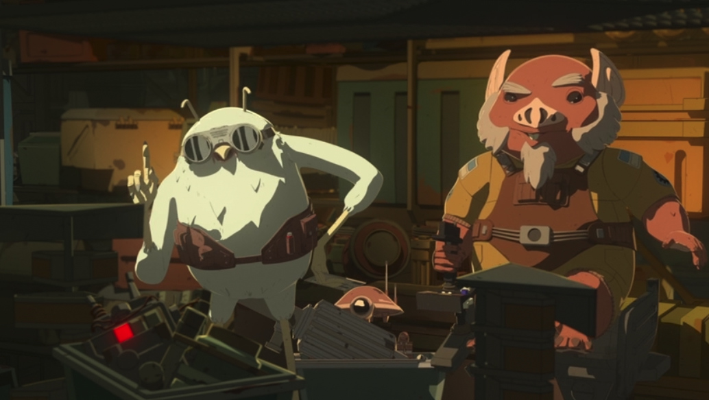 In 2016, Lucasfilm confirmed on social media that two female guest characters (Ione Marcy and Cassie Cryar) in The Clone Wars episode “Lightsaber Lost” were a couple (the relationship was never implied within the context of the show). Then in 2019, Star Wars Resistance had its first explicit gay couple in Flix and Orka, two reoccurring shop owners on the show. In the episode “From Beneath,” the team takes a trip to Flix’s homeworld to get fuel for the Colossus, and Orka gets to meet his partner’s family. The whole episode plays out like a family drama, but Flix’s family agrees that Orka is a good find for Flix.