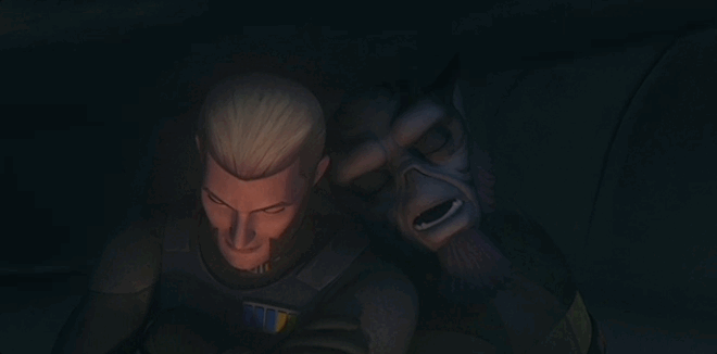 The former Lasat Captain of the Guard turned rebel, and the Imperial Security Bureau (ISB) Agent go from enemies to close friends with a curious end for both men. At the end of Rebels, Executive Producer Dave Filoni walked in circles around the question of whether Zeb and Kallus were a couple: