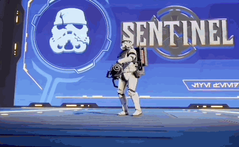 The characters of Star Wars: Hunters (left) look very similar aesthetically to Hasbro’s Fortnite line (right) | credit Lucasfilm Games and Epic Games