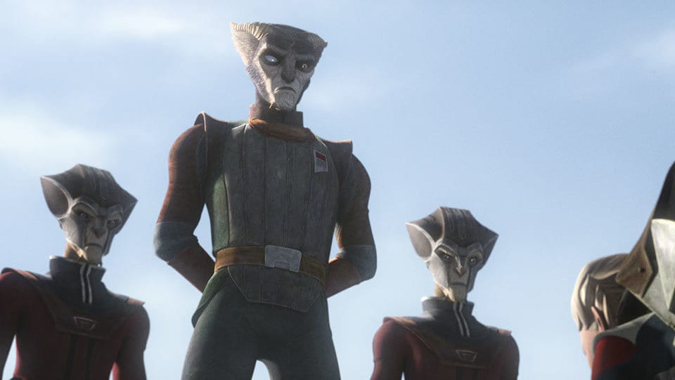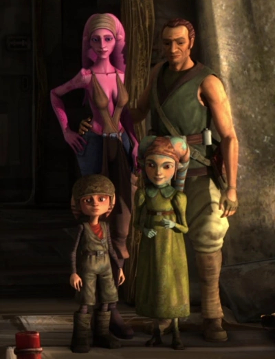 During the Clone Wars, the citizens of Saleucami wanted to remain free of conflict but still found themselves in a war between the Republic and the Separatists. The father references “Old Cut” Lawquane, a former clone trooper who deserts the Republic after the Battle of Geonosis. Cut later meets and marries a Twilek named Suu Lawquane, takes her name, and adopts her children. In The Bad Batch, Cut, Suu, and the kids leave Saleucami because the Empire is starting to tighten its grip on the planet. Saleucami is still stuck in conflict post-Empire, which has made its way into the homes of its citizens.