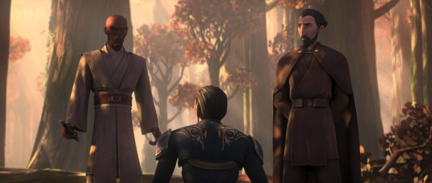 And you feel for Dooku. You can see why someone would become disenfranchised from the Jedi Order in these two episodes. In both instances, he sees corrupt Senators who drive their people to commit violent acts in desperation and the Jedi Council not motivated to challenge the Senate.