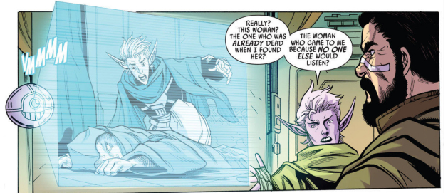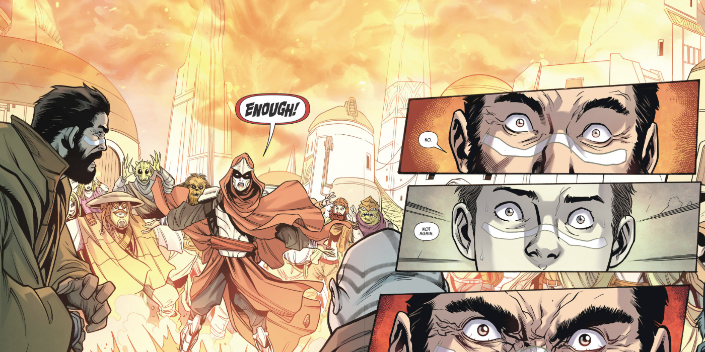It is also at the end when we realize that the Narratory Blocks discussing Vildar Mac are not from someone like Padawan Cathley but from the pickpocket. I wouldn’t have put it passed this corner of Star Wars to kill a main character in the first issue, but there is more going on than meets the eye.
