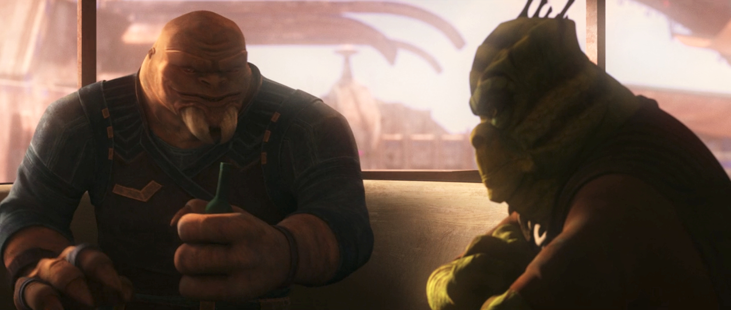 Omega is still fond of Cid, probably because the Trandoshan was the first to treat her like the rest of the clones. She suggests a second race, double or nothing. And she did a similar thing in season one’s episode, “Infested,” when Roland Durand tries to take over Cid’s bar. Fooled once, fooled twice. Fooled thrice? Probably.