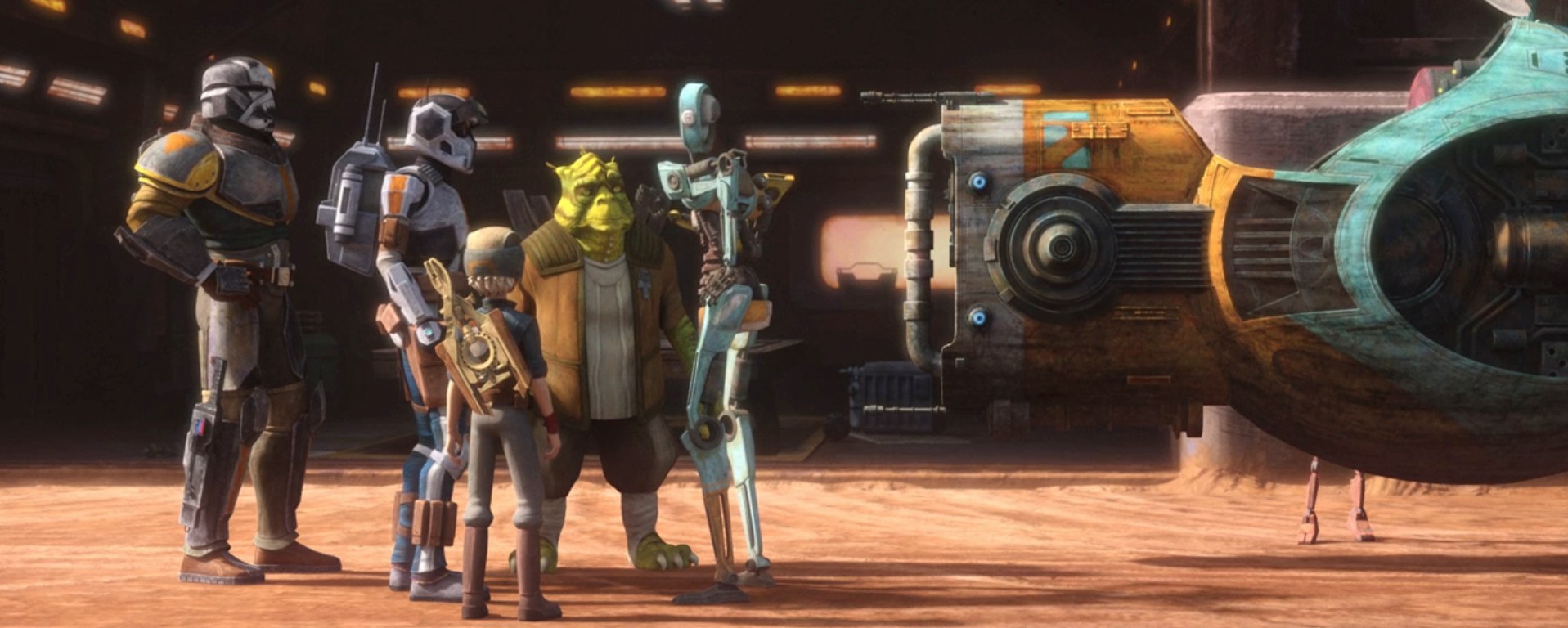 Sometimes, a seemingly lighthearted episode can share so much. The previous episode, “The Solitary Clone,” was a Crosshair-focused episode with no Bad Batch. This episode has half a Bad Batch, leaving Hunter and Echo on a mission somewhere while we spend quality time with Omega, Wrecker, and Tech.