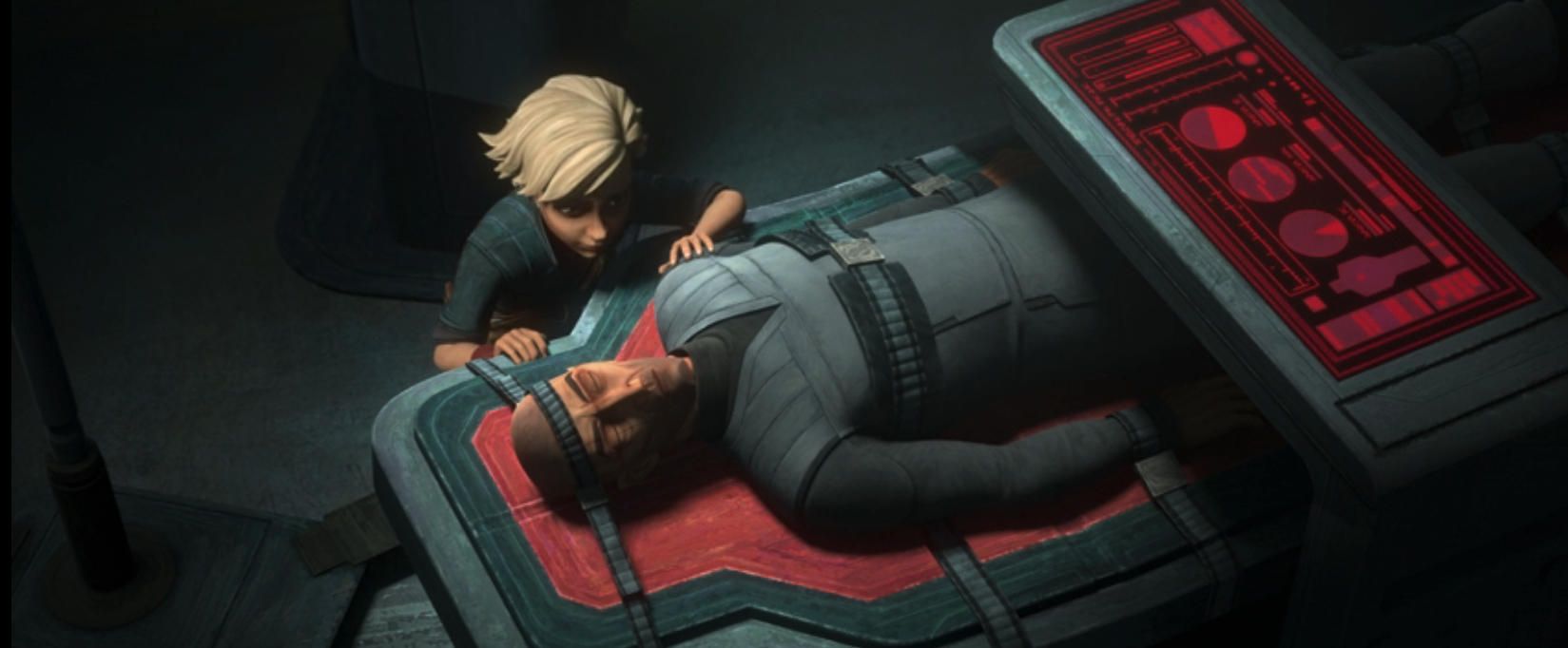 While I enjoy these two and a potential romance, it seems some things happened offscreen (similar to Hera and Kanan) that are only alluded to onscreen. The two definitely have a deeper connection that manifested at some point. Phee says goodbye to Tech her way after trying to get him to open up; Tech gives one last glance at Phee and boards the ship. This conversation should have been my first clue of what horror would come.