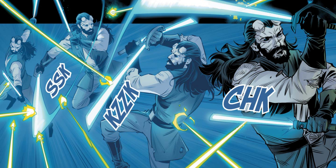 Because how Porter Engle became the Blade of Bardotta is not the focus of Charles Soule’s The Blade (the planet doesn’t come up until the last few pages). The four-issue comic series introduces Barash Silvain as Engle’s adoptive sister, who finds a way to make a family within the Jedi Order and lets those attachments cloud her judgment while attempting a peaceful negotiation.