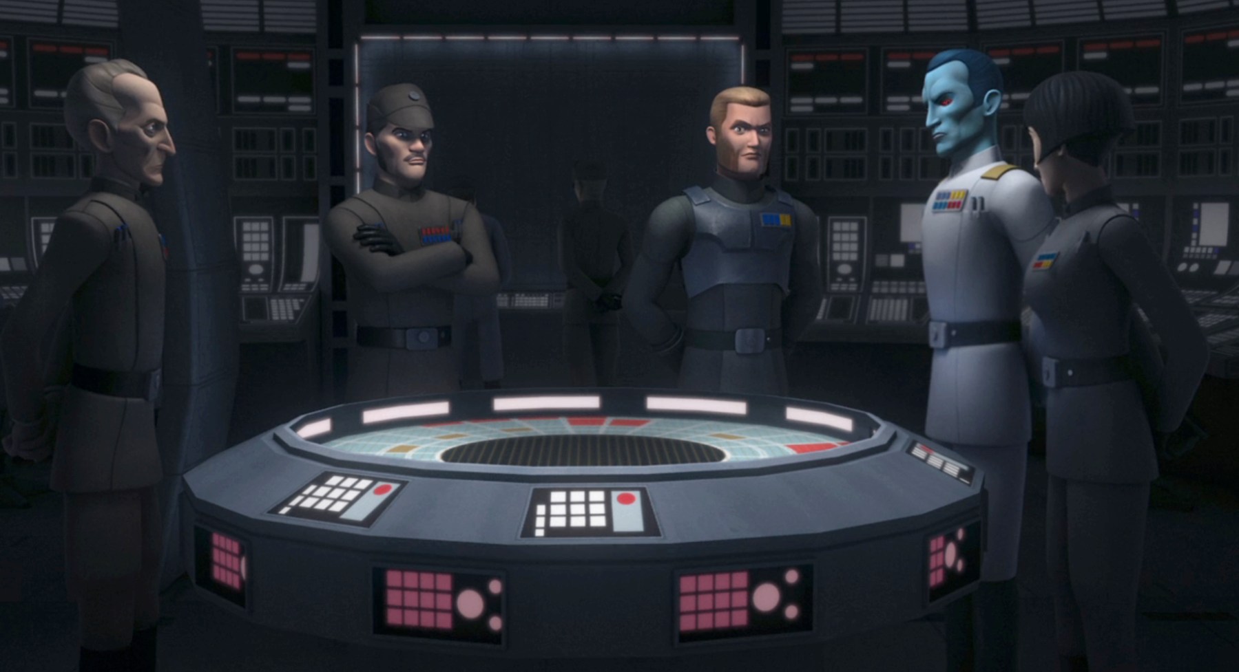Although Thrawn is a military genius, he is not politically minded, which is one of the reasons he aligns himself with Arihnda Pryce, who maneuvers her way into the Governorship of Lothal. And Pryce brings in Thrawn to help try and eliminate the Ghost Crew and the Spectres cell prevalent in Star Wars Rebels.