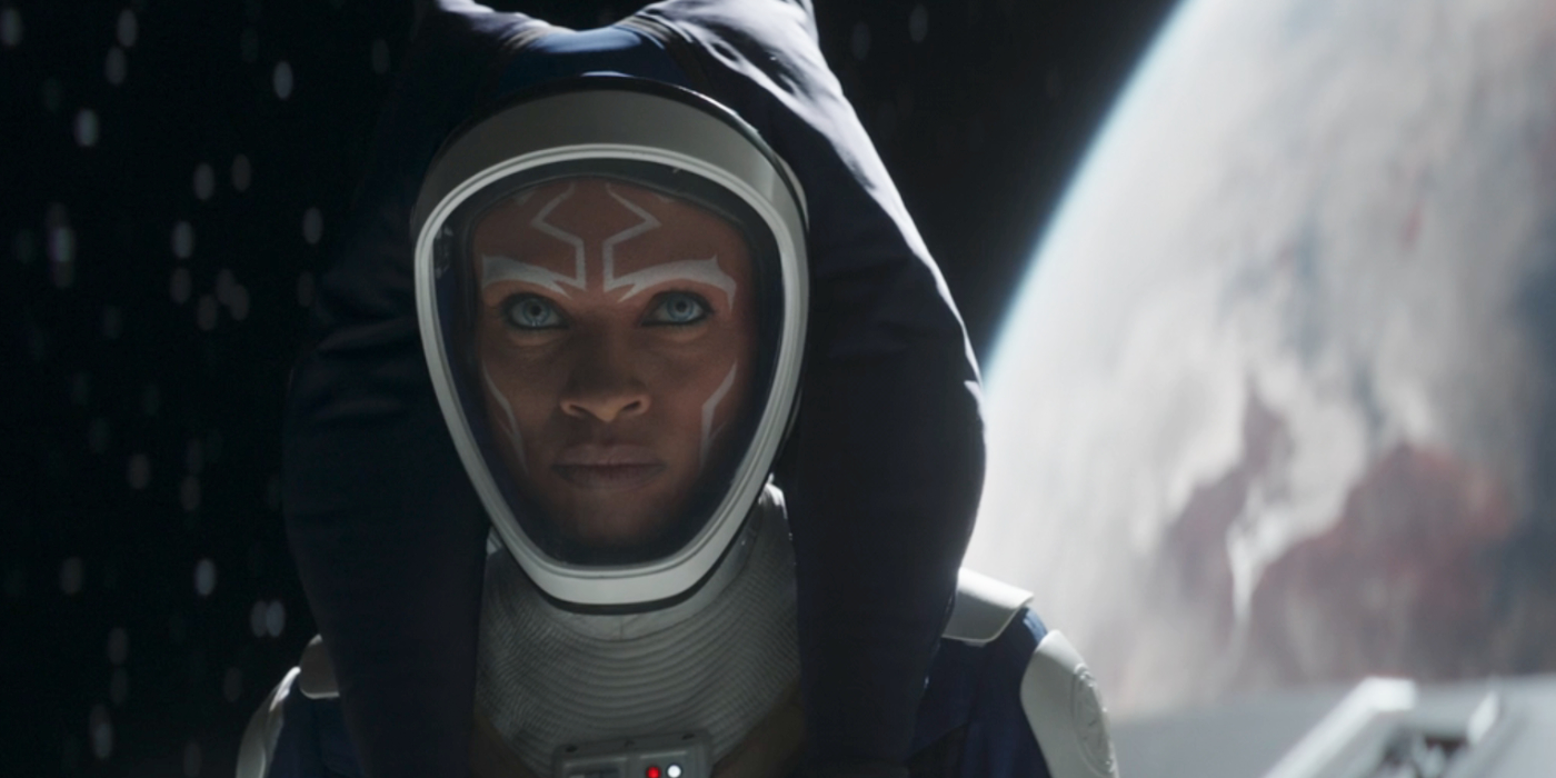 Ahsoka puts on an eye-catching blue suit that perfectly matches her lekku and braves space to distract the enemy squadron while Sabine repairs the ship. There is a slight suspension of disbelief that two Force-sensitives could not shoot down her ship just floating in space, but Ahsoka has plot armor.