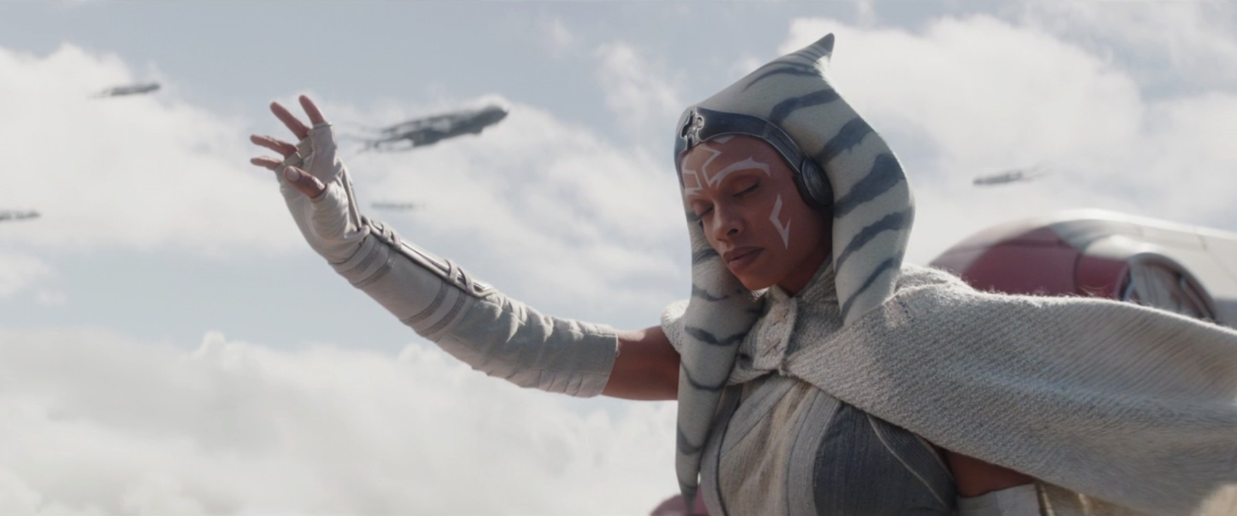 Let’s go back to the beginning—of The Clone Wars. There was speculation that we would see some Clone Wars scenes amidst the rumors of a young Ahsoka casting, and the episode did not disappoint. Yes, it is with the Volume, but those are extras in 501st Phase I armor, not CGI like the Prequels. It makes it more personal and conveys Ahsoka’s connection with the Clones and her trauma from that period. More importantly, it gets this across without being too inside baseball for those who did not watch The Clone Wars. For example, we do not see Temuera Morrison’s face but hear him as Captain Rex (welcome to live-action!) during The Seige of Mandalore, the last arc of The Clone Wars season seven. And that’s all we need. With Anakin there, we get an explanation of the battle from Ahsoka.
