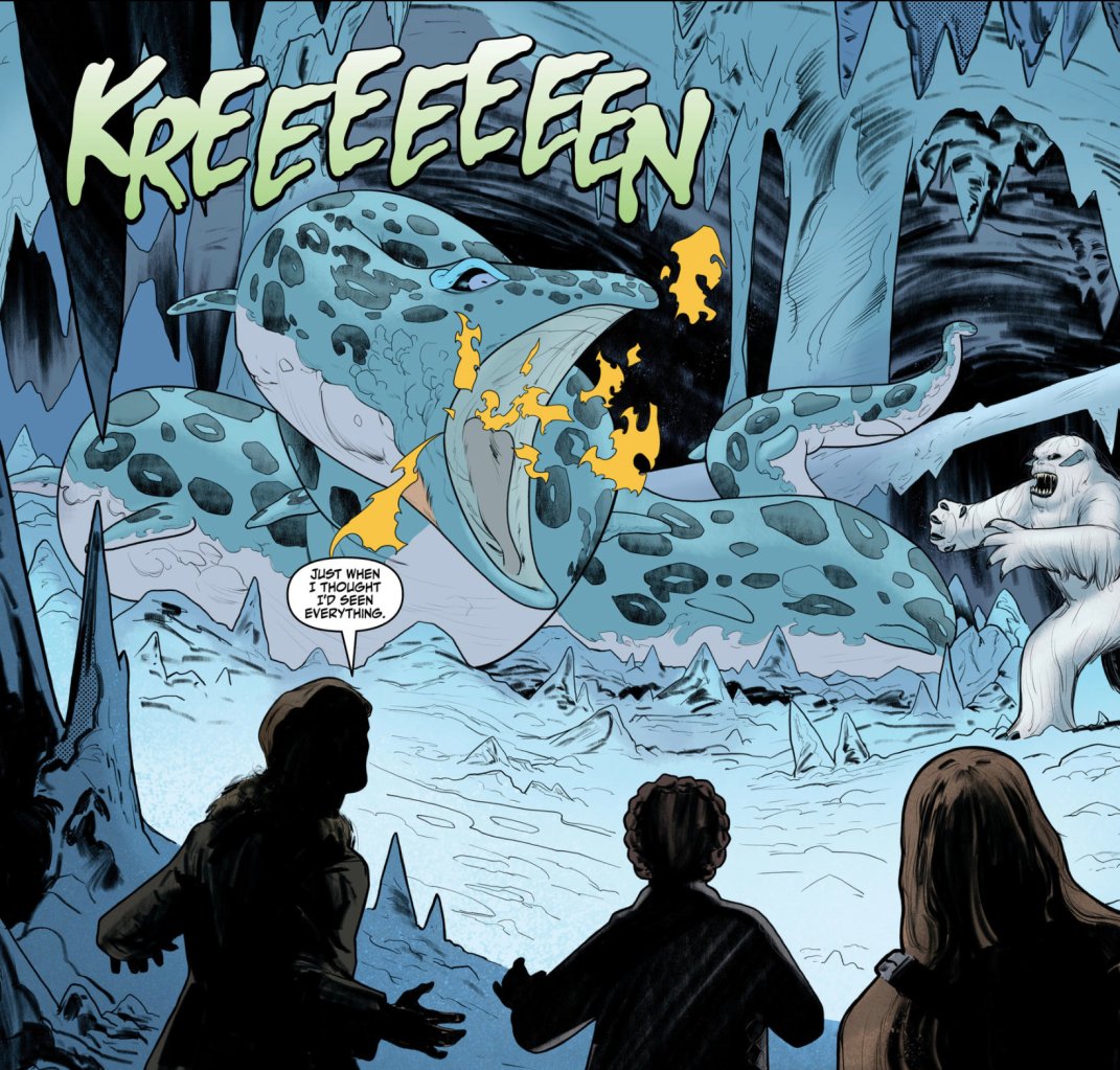 The Monster: We get wampas, giant dragon sluges, and a giant spider. For a frozen planet, there are a variety of creatures hiding in the caves that the Rebels look to call home. Luckily, Han, Leia, and Chewie have plot armor and will not meet their end here. But they don’t know that.
