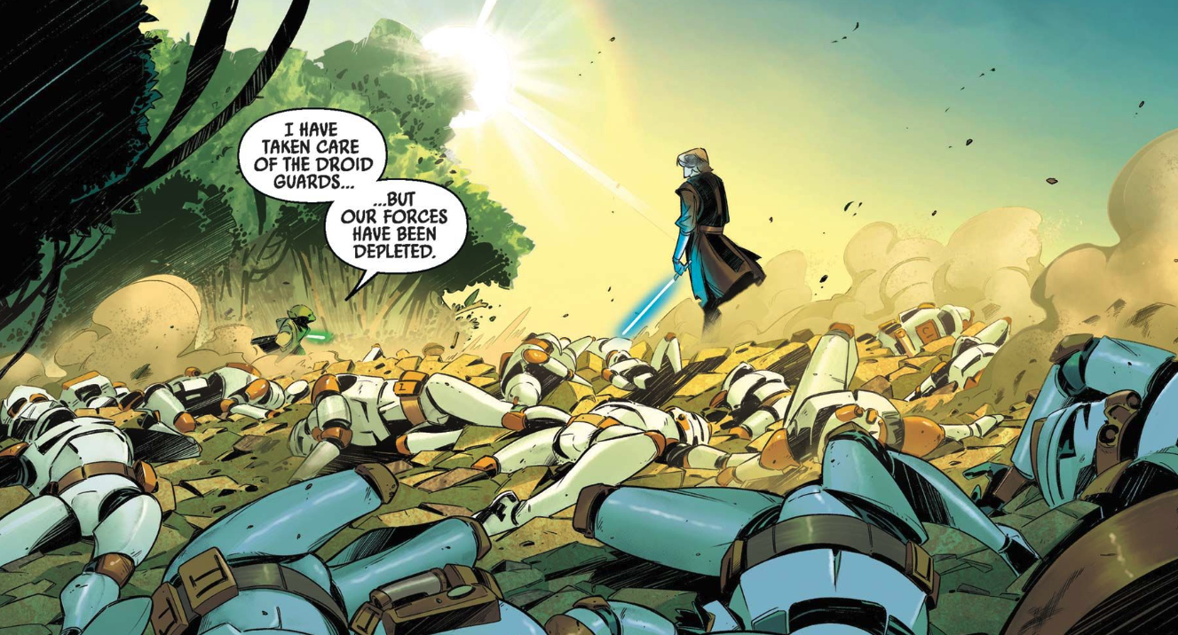 Fans who have wondered how Grievous would fare in a fight against Yoda have their answer: not well. Yoda could easily destroy Grievous when the two meet in issue seven of “Size Matters Not.” Grievous has a date with death at the hands of Obi-Wan Kenobi, so the General was never going to meet his end here, but it puts to rest a theoretical fight.