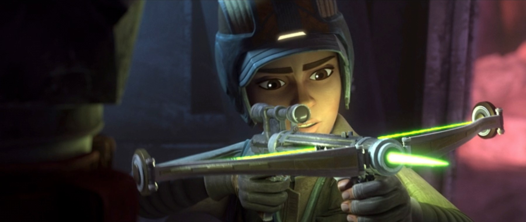 Omega’s relationship with her brothers is unique, and she has learned different skills from each of them. Leadership from Hunter, curiosity and wonder from Wrecker, strategy and flying from Tech, and focus from Echo. With Crosshair, that might come with shooting since he is still having accuracy issues. Plus, she has a new, slick crossbow.