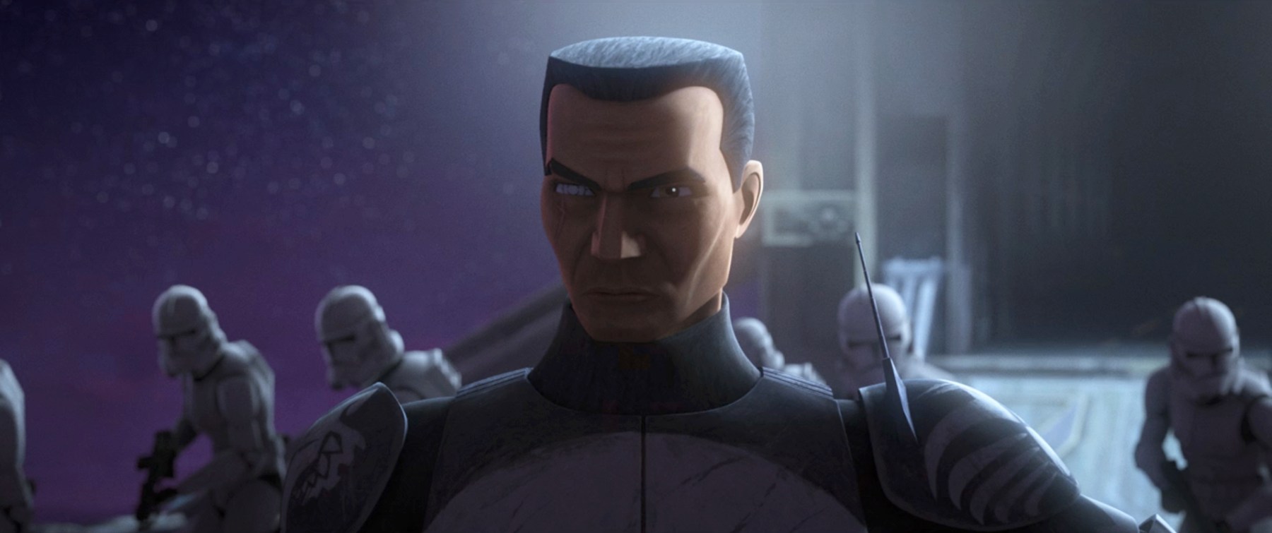At the end of “Infiltration,” Commander Wolffe is revealed to lead the backup unit sent to help secure Omega. The ending suggests he might be another brainwashed Clone, but then he sees the dead Clones on Teth, and his shock that they are the insurgence is evident. Immediately, Wolffe clashes with CX-2, who refuses to follow orders and continues to pursue the Clones, even risking their lives by shooting down their escape shuttle.