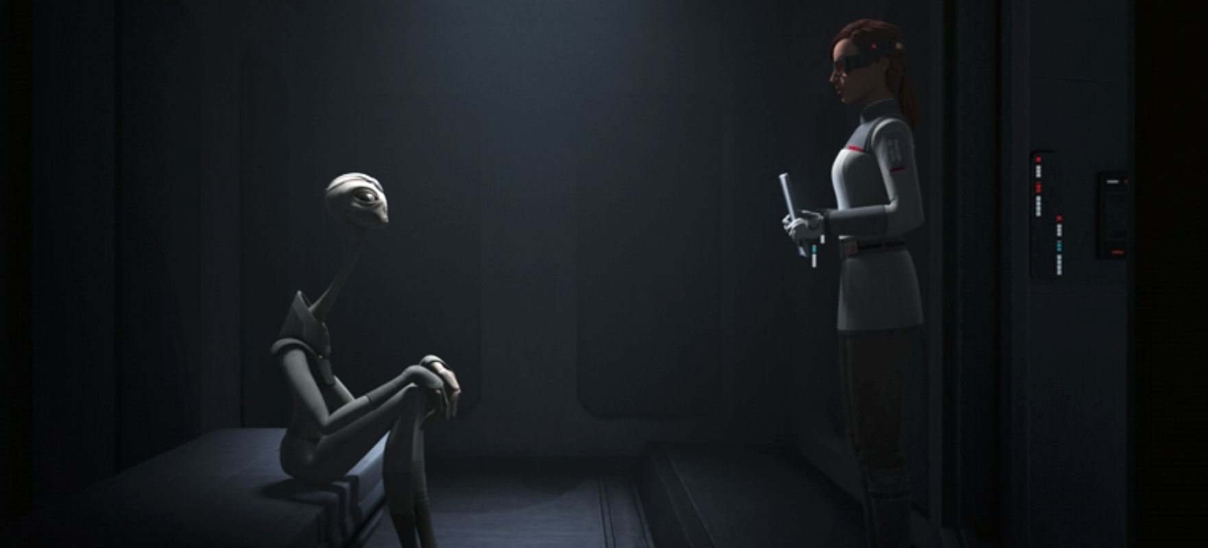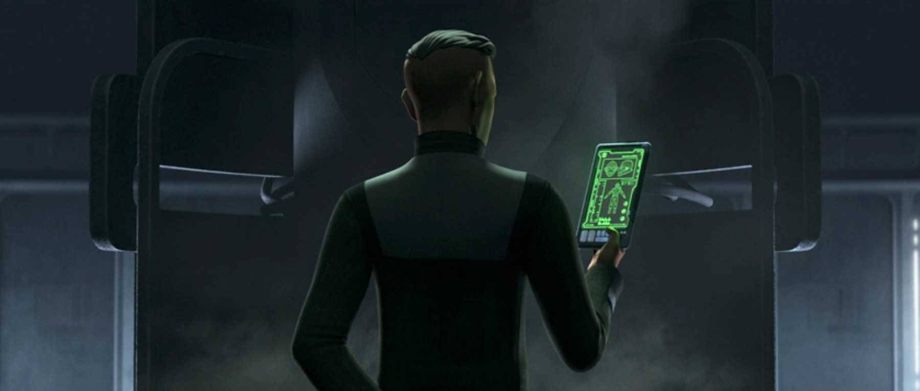 Meanwhile, on Tantiss, Emerie approaches Dr. Hemlock and tells him that progress has stalled since Nala Se’s confinement. Emerie asks Hemlock if he trusts her, stating that she has earned the right for high-level clearance, essentially becoming the new Chief Scientist. Emerie seems eager to continue Hemlock’s work, having worked by his side since she was little, but an unwelcome reality hits her immediately.
