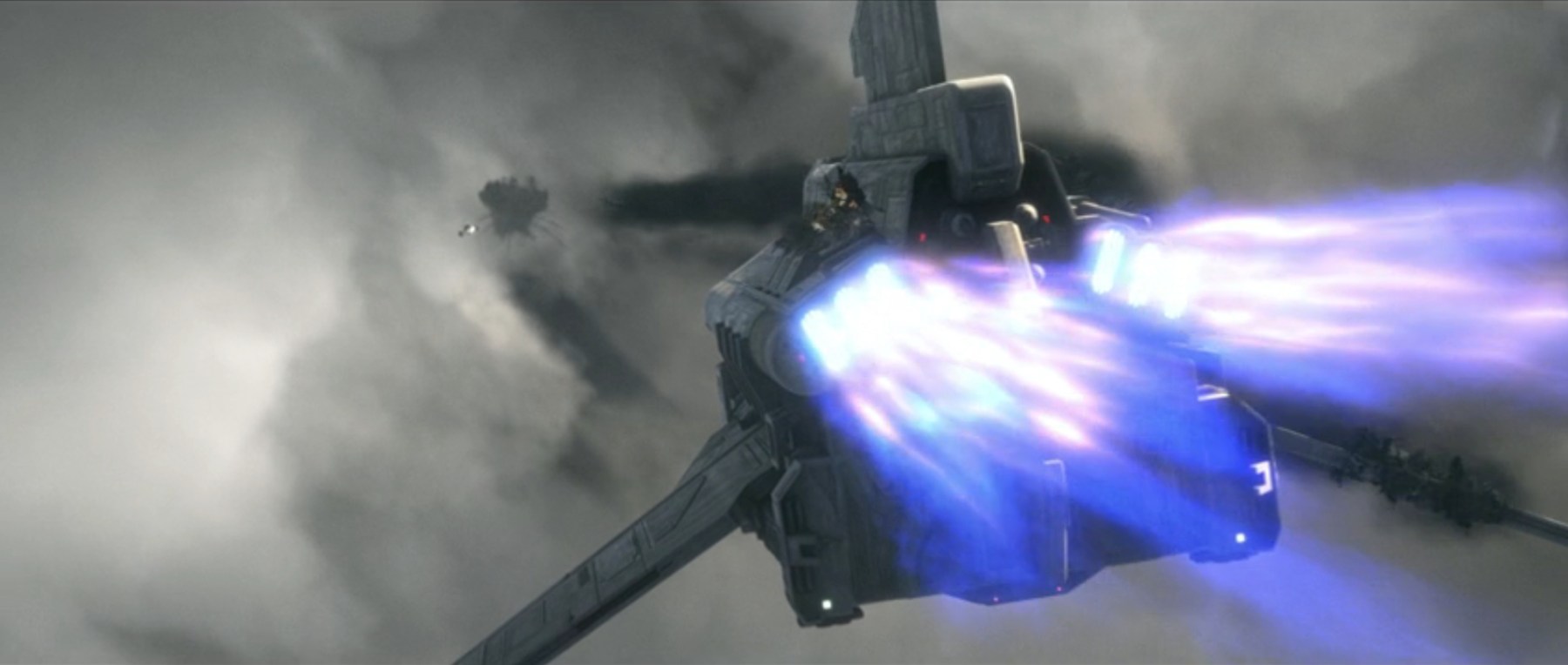 When the Batch disengages from the science vessel and is immediately approached by Tie Fighters, Hunter shows off his flying skills by flipping the ship and shooting up toward the Imperial Fighters.