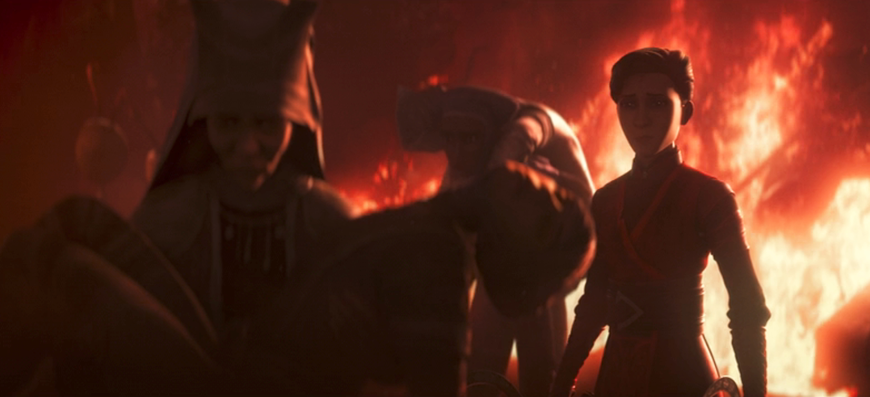 As for Barriss, her fate is unclear, though many assume that she is still alive (many Force-users have survived a stab to the abdomen). Like Morgan’s story, Barriss also has a full-circle moment: Just like Barriss did not leave the Jedi in “Realization” to die, Lyn does not leave Barriss to die in the cave. There are also hints at a rumored The Path series with the “traveler” and Barriss’s “old friend” (Quinlan and Ahsoka are candidates for these monikers).